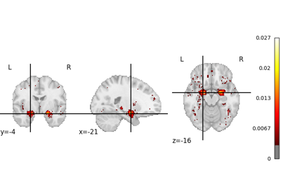 Example where a spatial prior is defined based on the distance between voxels and foci in a coordinate-based meta-analysis database
